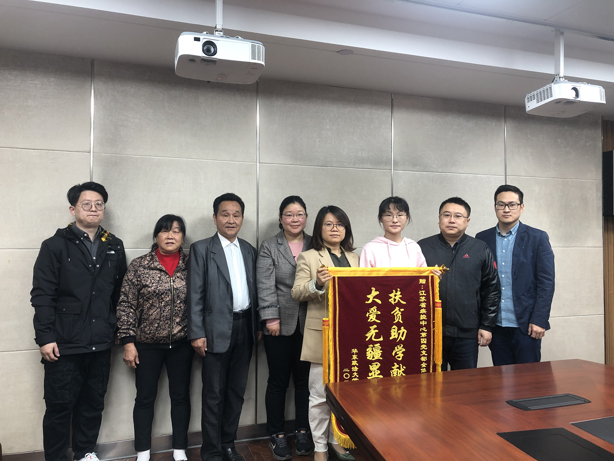 11月3日上午9时,卲同学及其家属一行来到中心,向四支部赠送锦旗,锦旗上写着“扶贫助学献爱心大爱无疆显真情”。锦旗传递的不仅是卲同学一家的感激之情,更是对四支部扶贫助学献爱心工作的高度认可。四支部充分发挥党建工作在扶贫助学攻坚战当中的引领作用,发挥基层党组织和广大党员战斗堡垒作用、先锋模范作用,确保实现决胜全面建成小康社会、决战脱贫攻坚目标任务。