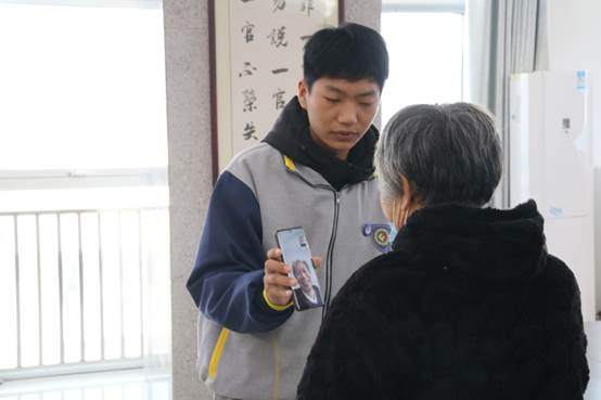 (图2中心党委书记朱宝立现场视频联系小雨乐和奶奶)
