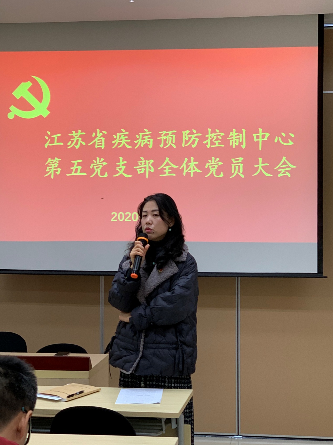 唐震书记紧紧围绕述职述责述廉工作要求,分五大方面向全体党员汇报了任职以来的工作情况,2020年是特别不平凡的一年,第五党支部在中心党委的领导下,顺利完成了换届改选,组成新一届支部委员会。唐震书记带领支部坚持以党的政治建设为统领,深入学习习近平新时代中国特色社会主义思想,宣传贯彻党的十九大和十九届二中、三中、四中、五中全会精神,毫不动摇贯彻落实全面从严治党责任,不折不扣落实中心党委部署的各项工作,紧扣推进疾控事业高质量发展目标任务,全面推进党的政治、思想、组织、作风、纪律建设,推进江苏疾控事业发展。在神日学习理论知识的同时,她还注重将理论转化为实践,组织了每月一次的丰富多彩的党日活动,自5月支部成立以来,开展了讲家风促廉政专题活动、“加强爱国主义教育 弘扬革命奋斗精神”参观颐和路社区将军馆和海洋国防教育馆主题活动、“不忘初心 重温誓言”集体政治生日活动、保障两会主题活动、“勿忘国耻 自强不息”纪念抗战集体观影活动等。11月初,支部与栖霞高新区共建结对,开展“弘扬斗争精神 助力疫情防控”结对共建最佳党日活动。冬至当天组织全体党员职工一起包饺子迎冬至。极大地凝聚了人心,温暖了人心,振奋了人心。组织开展“党员廉政教育月”活动,通过开展讲家风促廉政专题活动、“家·国·天下”书画摄影比赛等活动让清正廉洁思想植入每个党员心中。聚焦不敢腐不想腐,开展常态化警示教育,在B4楼建设中心“廉政文化长廊”,将廉政名言警句、党的要求张贴上墙,警示大家,成为五支部廉政工作的特色亮点。