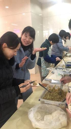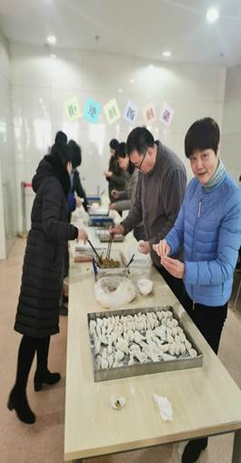 会议结束,第一党支部全体党员群众举行了迎新春包饺子活动,大家欢聚一堂迎接2021年新春。