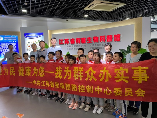 为深入推进党史学习教育,切实把学习成效转化为工作动力和成果,进一步加强党建与业务工作深度融合。5月28日,江苏省疾控中心第四党支部联合省级青年文明号消媒所,开展“我为群众办实事,助力校园学程周”主题党日活动,利用中午休息时间,组织拉萨路小学三(10)班的同学们参观江苏省有害生物科普馆。