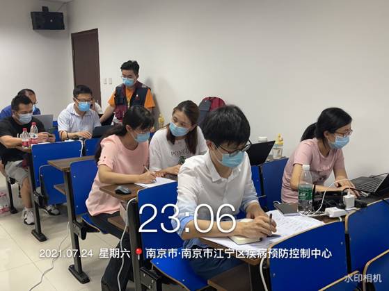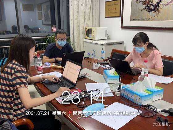 到达江宁区疾控中心后,戴队长与南京市疾控中心驻江宁区疾控中心负责人简单交接、安顿落实办公地点和任务后,安排队员分别对接病例流调组和密接流调组,负责参与既往病例流调报告的核实、完善及把关,承担新病例和新增密切接触人员及次密切接触人员的基础信息调查、核实。