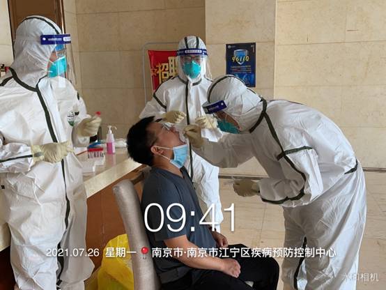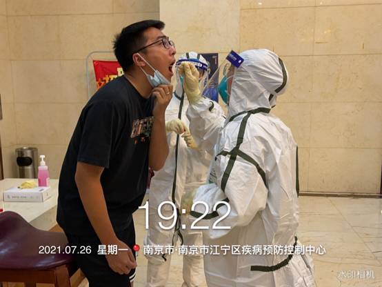 综合协调组每天还要完成所有流调队员的采样工作,为了“零感染、打胜仗”的目标,采样队员们穿着厚厚的防护服,在没有空调的大厅每天坚持为大家采样,每次采完样里面的衣服都湿了一大片。