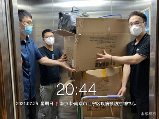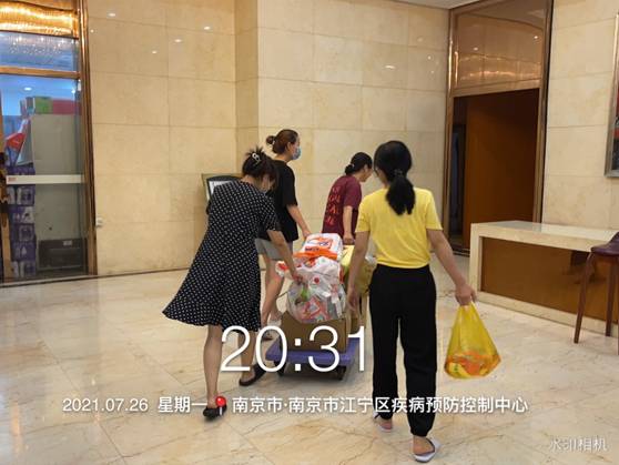 另外,综合协调组每天为省级和常州、扬州、淮安三个大市流调队员提供后勤保障服务(早、中、晚餐以及夜宵),流调队队员们每晚都工作到凌晨两三点,给大家准备好泡面、咖啡、红牛等食品,补充体力,让队员们更加充满干劲地熬夜工作。申请笔记本、电话机、转换器、打印机等办公用品物资保障,搬运分发物资也是综合协调组的日常工作,不光是男生,女生也积极地搬运物资,为整个团队贡献出自己的力量。