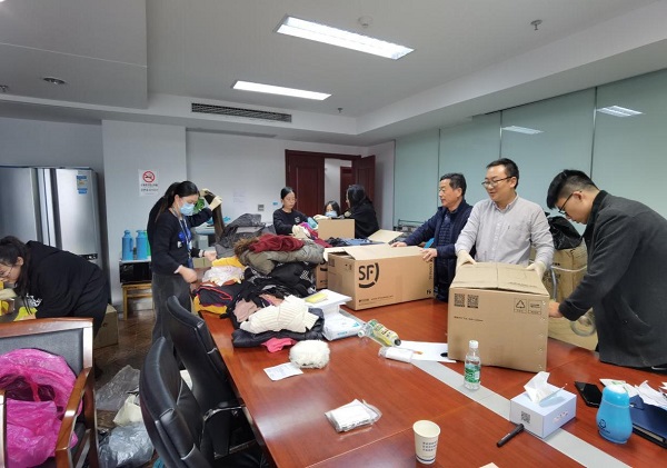 自倡议发出后,中心职工踊跃参与,纷纷将家里闲置的衣物、被褥等物品打包送到集结点。考虑到卫生问题,大家在将物品打包前,都予以清洗晾晒,有条件的还进行了消毒处理。在收到捐赠物品后,第三支部党员同志分工明确,对捐赠物进行分类整理,进一步打包成11大箱。成员们认真细致,将衣物按厚实程度、适宜人群的不同归好类,方便衣物在到达受捐地后的进一步分发。感受着指尖衣物的温暖,想象着山里朋友穿上它们时的笑脸,大家的心里都暖暖的。