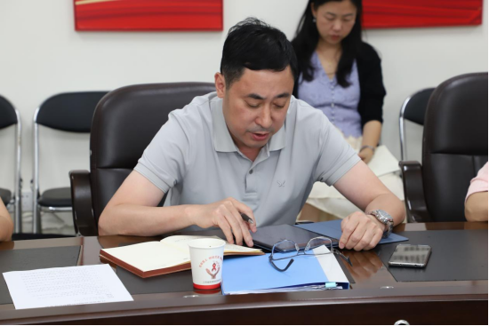 随后,党委办公室主任胥翔总结上半年意识形态工作,汇报2023年上半年中心存在的5类安全生产风险隐患。经排查,中心上半年意识形态方面仍然存在一些薄弱环节。主要表现为:少数部门和支部对党员干部职工的思想动态掌握不够及时全面;意识形态分析研判在支部层面还缺乏针对性指导;意识形态阵地建设的创新意识不强、引领性不够;相关管理制度落实不到位或打折扣的现象仍然存在。在安全生产方面,中心存在研修实习人员量大、管理漏洞多;江苏路院区围墙缺乏安防设施、水电和建筑机构老化、电梯老旧等安全隐患。下一步,中心将在强化组织领导、抓实主题教育理论学习、改进工作方式方法和强化阵地管理持续用力,及时发现意识形态领域倾向性、苗头性问题,主动防范化解风险,厚植党员干部的思想基础,牢固树立“四个意识”,坚定“四个自信”,做到“两个维护”。