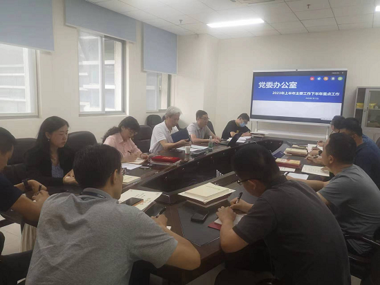 胥翔主任首先汇报了党委办公室2023年上半年工作情况,并明确了下半年工作的重点。一是持续强化理论学习,抓实抓细主题教育相关理论学习和讨论调研活动;二是明确支部开展党日活动相关规范和要求;三是对标抓好全国文明单位复核工作;四是进一步筑牢意识形态防线,从支部层面开展意识形态半年自查工作。