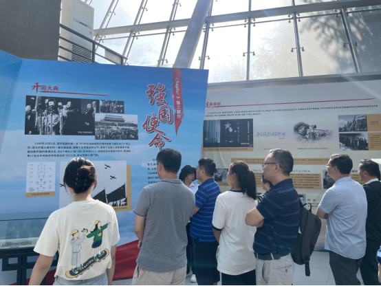 同时,大家参观了《红色飞鹰——笕桥航校中走出的中国共产党人》专题展,专题展包括航空初心、强国使命、矢志救国三部分,展现了共产党人从航空救国、航空强国,再到航天强国的奋斗历程。