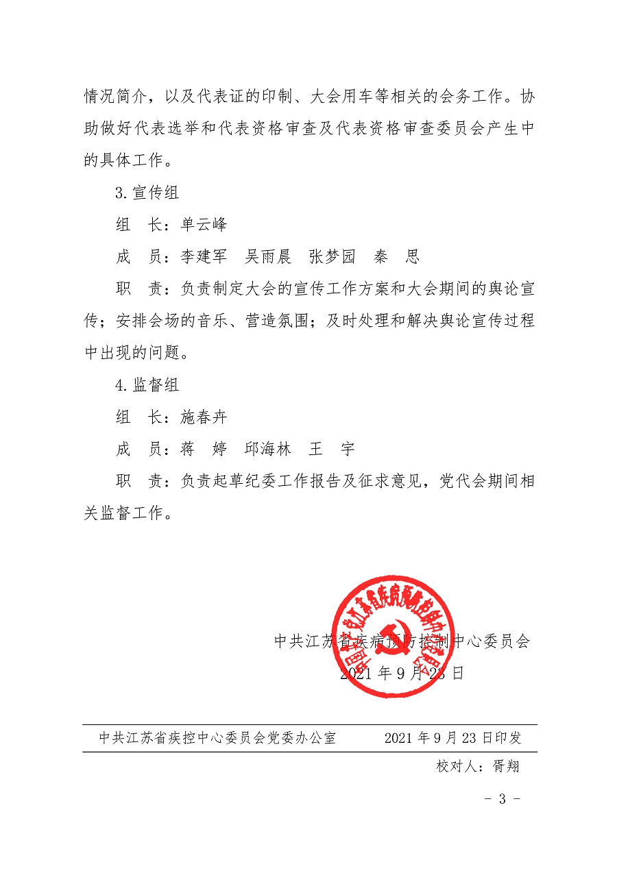 关于成立中共江苏省疾病预防控制中心委员会党员代表大会筹备工作领导小组的决定