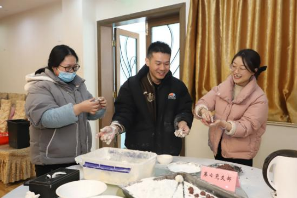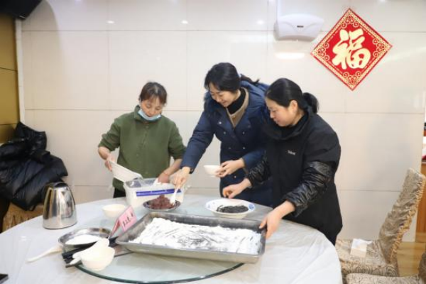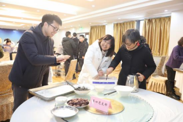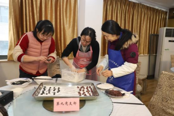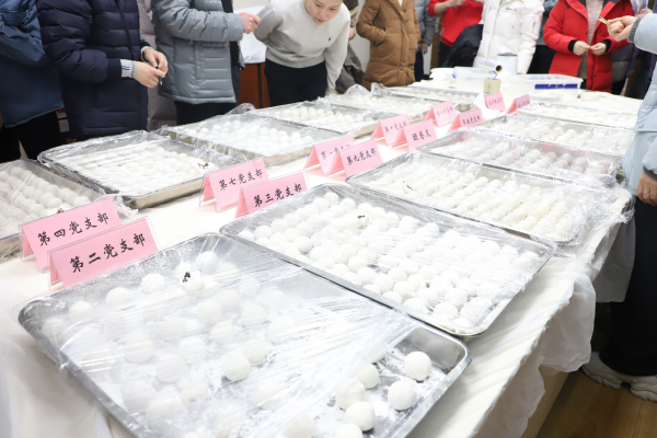 本次活动以支部为单位,邀请了团总支和农工民主党支部,每个小组选派3名选手,共有12支参赛队伍,36名选手参加比赛,各党支部、团总支和农工民主党的副书记们作为裁判团,负责监督比赛和投票;部分职工和家属纷纷前来观战。随着党委办公室胥翔主任“比赛开始”的一声令下,选手们争分夺秒、分工合作,揪出一块面团,放在掌心微微压扁,馅料加入其中,包裹住,轻轻搓成圆球……选手们围在桌子周围,一齐动手,谈笑间,一颗颗饱满圆润的汤圆落入盘中。一些小朋友也迫不及待的加入其中,也给活动增添了不少乐趣。