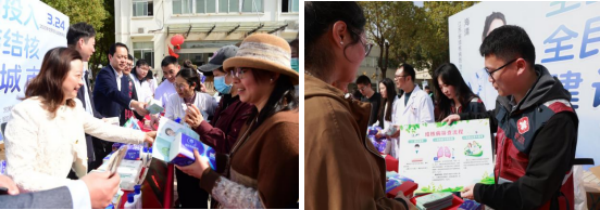 活动伊始,省疾控中心副主任霍翔、省疾控中心党委办公室主任胥翔与镇江市相关部门负责人一同认真观看了宣传展板,详细了解镇江市结核病防治工作成效,并与疾控专家、医务人员亲切交流。在宣教台前,党员们主动向福利院老人们发放宣传手册,耐心讲解结核病相关防治措施,号召大家从自身做起,做健康的第一责任人,共同营造群防群控的良好氛围。