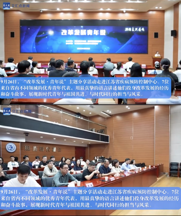 9月26日上午,我中心C楼208会议室内气氛热烈、掌声不断,“改革发展·青年说”主题分享活动在此精彩上演。7位来自省内不同行业的团省委青年讲师团成员走上讲台,用真挚的语言分享了他们在各自岗位上投身改革发展、挥洒青春汗水的奋斗故事,生动展现了新时代青年与祖国共奋进、与时代同发展的精神风貌。本次活动由共青团江苏省委和新华报业传媒集团共同主办,我中心团总支承办。