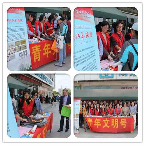 上午10点,行动队一行来到浦口区顶山街道社区卫生服务中心门前广场,青年志愿者们迅速穿上中心志愿者红马甲并布置活动现场,营造活动气氛。临时搭建的展台上放置科普食品添加剂、生活饮用水、科学补碘等健康知识的宣传用品;展台旁放置的“前进中的江苏疾控”海报详细介绍了我单位近年工作开展情况及取得成绩;身着红马甲的志愿者们吸引着每一位来往市民的目光,他们积极主动的走进背街小巷,主动发放宣传品,吸引越来越多的市民加入到活动中来。活动现场还发放了印有中心官方微信公众号二维码的钥匙扣,志愿者们现场手把手帮助市民完成关注中心官微,提升中心官微影响力同时方便更多群众更便捷获取更多健康知识,提升健康生活品质。在行动队同志们的耐心宣传下,现场市民对食品添加剂、生活饮用水及科学补碘等健康知识有了更深理解,大家对发放的宣传资料赞不绝口,纷纷表示这样的活动非常有意义。