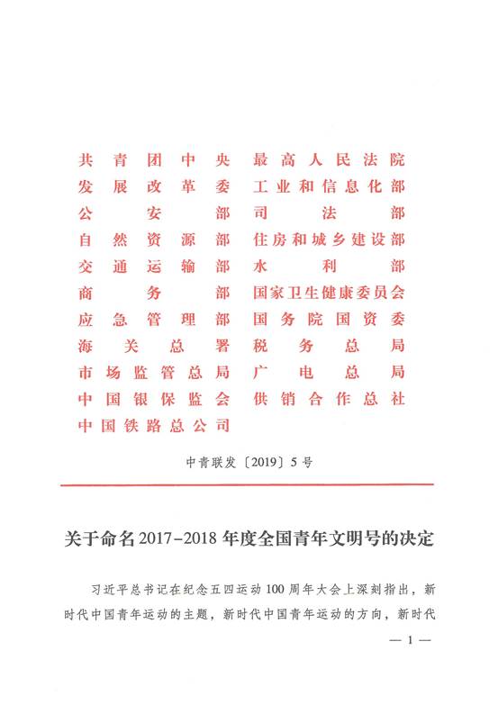 今年是五四运动100周年,也是中华人民共和国成立70周年,在这个特别的时刻,江苏省疾病预防控制中心食品安全与评价所获此殊荣是对中心党建、团建工作的重要肯定。食品安全与评价所是一支朝气蓬勃的团队,平均年龄31岁,从2011年开启争创青年文明号工作,2013年获得“省级机关青年文明号”荣誉称号,2016年以现场考核答辩第一、现场检查满分的优异成绩荣获“省级青年文明号”荣誉称号,2017年获得由共青团江苏省省级机关工作委员会授予的青春建功“十三五”开局年模范青年集体的荣誉称号;2019年正式荣获“2017-2018年度全国青年文明号”的荣誉称号。