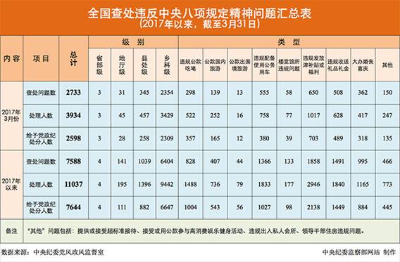 2017年3月全国查处违反中央八项规定精神问题2733起