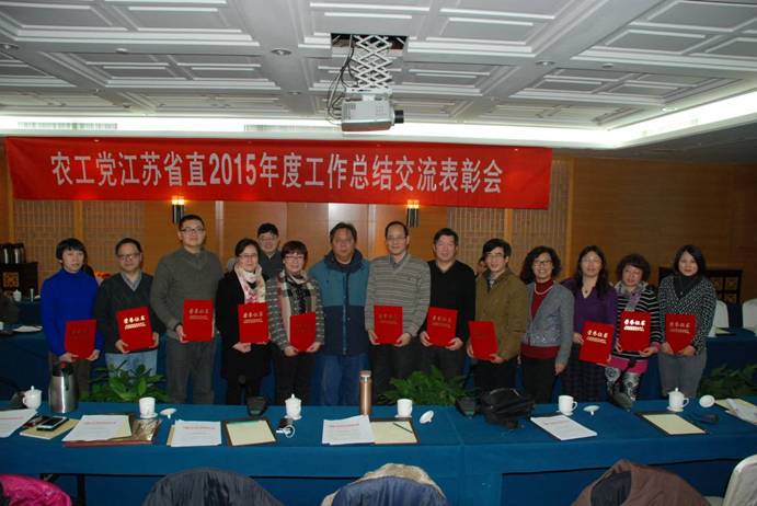 农工党江苏省直2015年度工作总结交流表彰会于2016年1月23日下午举行,省直50个基层支部主委参加了会议,农工党江苏省委秘书长毛庆卫、组织处长陈丽菲等领导出席会议。