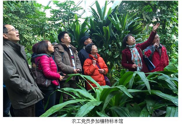 2016年12月18日,农工党江苏省疾控中心支部与农工党江苏省中西医结合医院支部联合江苏省中国科学院植物研究所农工党支部成员开展了一次植物与环境、植物与健康的参观调研活动。省委省级机关工委统战部王晓军受邀一并参加了此次活动。在研究所植物标本馆,农工党员、植物园研究所杭悦宇教授全程讲解植物种类、特点以及植物的适宜生长环境,植物对生活和健康的影响,同时介绍了研究所馆藏标本的采集和收藏历史等,精彩的讲解让现场党员惊叹不已,对植物生长特性以及植物的作用有了更进一步的了解,增长了植物知识。在参观过程中,各单位农工党员既加深了相互了解,也初步洽谈了植物与健康研究的合作意向。
