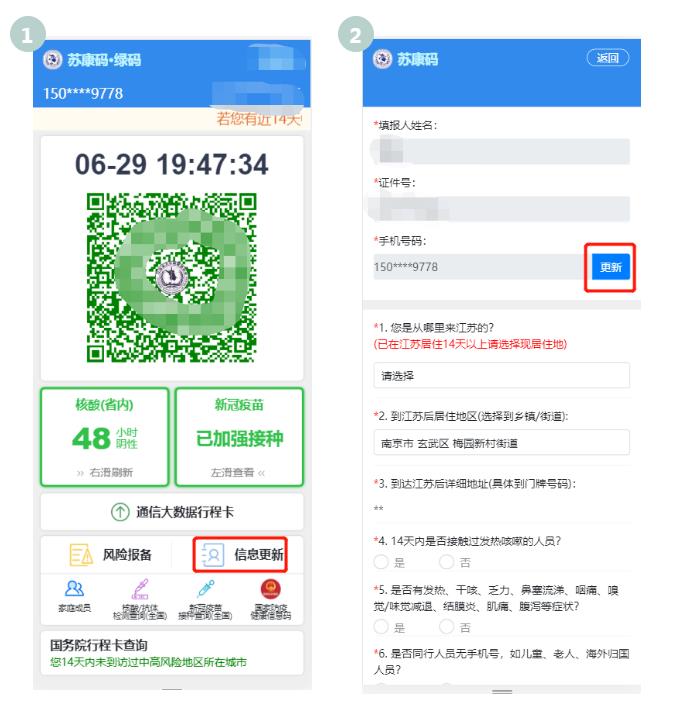 1.苏康码亮码页面,点击“信息更新”。进入更新页面,点击“更新”按钮。