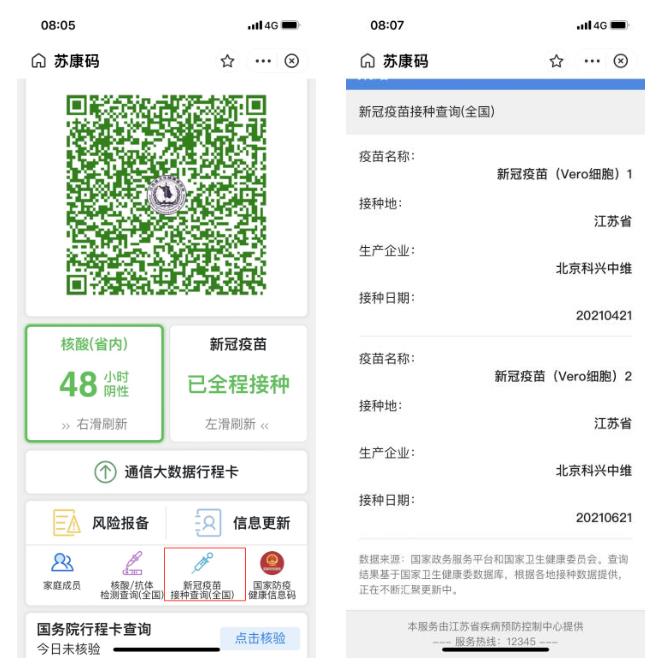 为便利群众此次改版中新增了新冠疫苗接种查询(全国)功能,点击按钮即可显示疫苗名称、接种省份、生产企业、接种日期,外省接种记录也可以便捷查询了