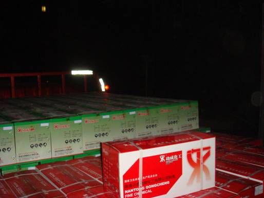 直到晚上10点半左右,最后一批从南通紧急调运的消杀药品(共计4.2吨)送达。杨华富科长立即组织科室人员李雷、潘龙雪、郭保武和蒋志荣装运货物。虽然已至深夜,同志们都很疲惫了,但大家仍然积极主动的搬运物资,没有任何怨言。直到凌晨一点左右,所有5吨重的物资全部装运完毕。大家汗湿了衣服,但疲倦的脸上都露出胜利的笑容。