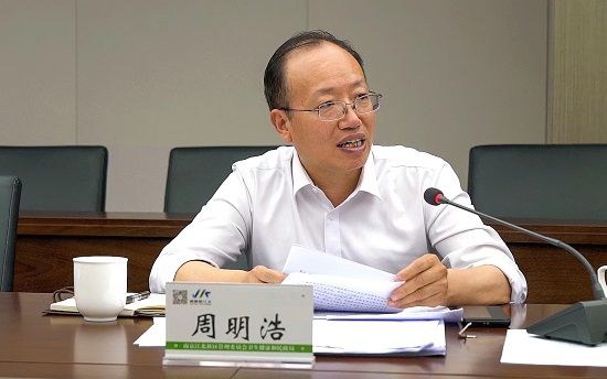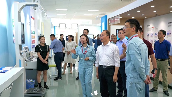 8月9日上午,省卫生健康委副主任、省疾控局局长周明浩同志率队前往南京市江北新区参观职业健康体验馆,查看江北新区公共卫生服务中心新址建设,并主持召开座谈会,听取南京市江北新区职业健康工作汇报,与南京市江北新区公共卫生服务中心、卫生监督所、江北医院、长芦社区卫生服务中心、化工园区、大厂街道办事处及部分健康企业代表进行交流。