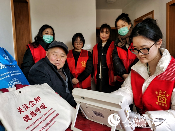 医护人员上门为尘肺病患者范雪坤进行常规体检。人民网记者 王继亮摄