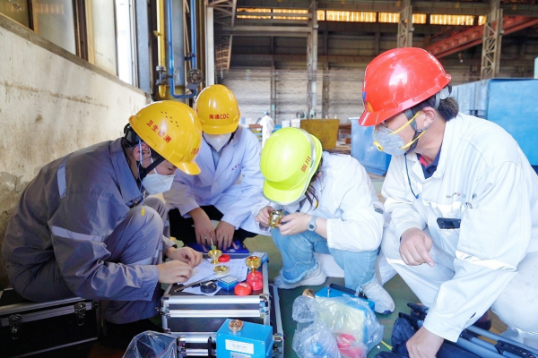 7月25日,中伏首日。下午一点半,来自南通市、崇川区两级疾控中心及崇川区职业病防治院的5名专业技术人员来到南通市区某重机生产企业,深入一线车间,开展国家职业病防治项目重点行业重点岗位职业病危害因素监测。