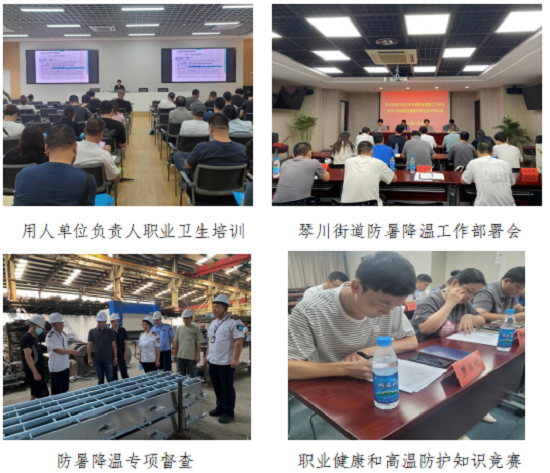 三是服务指导,加强健康监护。联合卫生健康部门,组织辖区社区卫生服务中心、街道执法局、职业健康技术服务机构开展企业和劳动者防暑降温、心理健康辅导、中暑急救和应急处置等相关知识技能的培训指导和健康服务工作。以职业病危害风险等级分级分类和小微企业帮扶工作契机,为企业提供职业病危害因素专项治理指导、职业病危害综合风险评估、职业卫生高温防护用品配备指导等服务,督促用人单位落实防暑降温的主体责任,合理安排作业时间,提前做好高温作业人员的职业健康检查。指导企业在高温作业场所增添必要的通风或降温设备,配备防暑降温饮料及必需的药品,改善劳动条件和作业环境。
