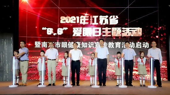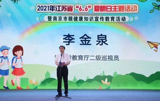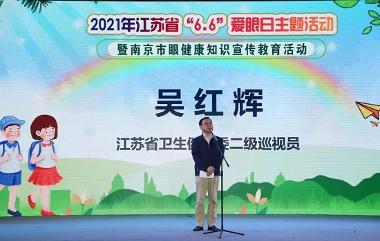 6月3日下午,2021年江苏省“6.6”爱眼日主题活动暨南京市眼健康知识宣传教育活动在南京市翠屏山小学隆重启动。本次活动由省卫生健康委和教育厅联合主办,省疾病预防控制中心、省儿童青少年近视防控研究中心、南京市教育局、南京市卫生健康委等近十家单位共同承办协办。来自省、市、区教育部门、卫健部门、疾控中心的领导、儿童青少年近视防控专家、在宁媒体及学校部分师生、家长代表近两百人共同参加了启动仪式。整场活动在同学们充满活力的阳光体育运动展示中拉开帷幕,南京市教育局一级调研员卢普新首先致欢迎辞,接下来,省教育厅二级巡视员李金泉、省卫生健康委二级巡视员吴红辉等领导先后讲话。