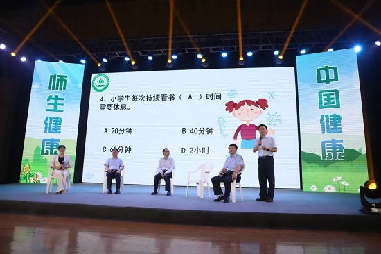 为提高家长对近视等学生常见病防控参与力度和积极性,本次启动仪式上进行了“江苏省儿童青少年常见病防控健康父母行动之短视频大赛”优秀作品展播和颁奖。从今年三月起,由江苏省疾病预防控制中心、江苏省预防医学会联合主办了该项活动,旨在引导父母作为家庭健康的第一责任人,切实将学生常见病防控融入家庭生活中。经过网络海选、县级初赛、市级复赛、省级决赛,全省最终评出165个获奖作品。此外,启动活动还安排了近视防控知识竞答及专家互动环节、翠屏山小学的同学们也用精彩的节目为大家展示了学校日常近视防控的点点滴滴。
