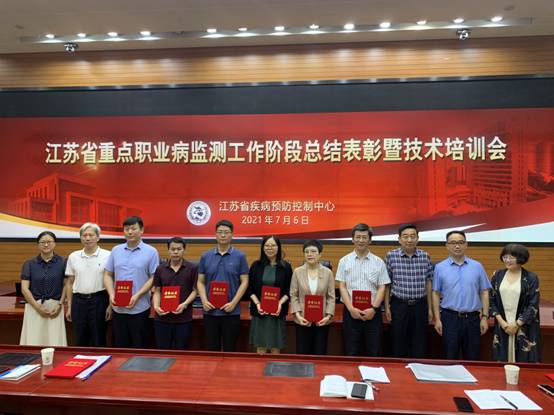 朱宝立书记从监测质量问题、监测结果应用、学科建设等方面提出:1.要从高质量发展的角度,确保监测各环节做好质量控制;2.深度挖掘监测数据,为制定本地区政策、规划及监督执法提供依据;3.疾控系统要重视队伍建设,重视软实力,将科研和常规工作相结合,提升工作能力。接着,朱宝立书记现场宣读表彰2020年度江苏省重点职业病监测与尘肺病项目先进地区先进单位先进个人的通知。出席会议的领导为受表彰的集体和个人颁发了获奖证书。