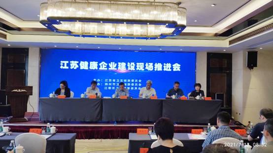 2021年7月12-14日江苏省健康企业建设现场推进会在扬州市召开。江苏省卫健委职业健康处处长袁家牛、江苏省疾控中心党委书记朱宝立、江苏省卫健委健康促进处副处长单玲英、扬州市卫健委二级调研员陈雷出席会议。来自全省13个设区市及部分区县级卫健委、疾控中心和卫生监督机构的相关领导及相关专业技术人员共计近80人参加了本次会议。会议由江苏省卫健委职业健康处二级调研员吴海鹰主持。