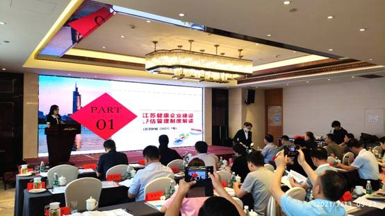 接着,江苏省疾控中心职防所副所长张巧耘解读了《江苏省健康企业建设评估管理制度》,阐述了评估流程、方法,逐条解读了评估指标的内涵、建设关键点及评估注意事项。