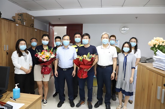 2021年8月19日是第四个中国医师节,江苏省卫生健康委二级巡视员祁爱平一行到江苏省疾病预防控制中心,慰问中心全体职工,并向奋战在抗击新冠疫情第一线全省疾控工作者致以节日的问候。祁爱平二级巡视员一行在江苏省疾控中心党委书记朱宝立的陪同下,先后参观了江苏省疾控中心病原微生物研究所和应急办公室。