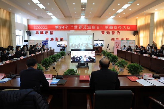 江苏省句东强制隔离戒毒所和江苏省女子强制隔离戒毒所分别汇报了一年来艾滋病专管中队治疗管理和戒毒康复工作进展,展示了新冠疫情防控与艾滋病防治所取得的成果。在活动现场,以视频连线方式与所内“涉艾”戒毒学员和管教民警进行了交流互动,观看了学员的文艺演出和艾滋病防治知识竞赛。