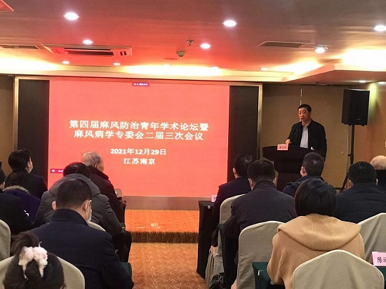 2021年12月29日,江苏省预防医学会第四届麻风防治青年学术论坛暨麻风病学专委会二届三次会议在南京召开。学会蒋辽远秘书长出席会议并讲话。会议采取线上和线下相结合方式举行。专委会全体常委、部分特邀委员、青年委员以及基层麻风症状监测学组、基层麻风科普学组组长、副组长共30余人参加线下会议,其余50名委员参加线上会议。专委会主任委员张连华主持了开幕式和学党史环节。