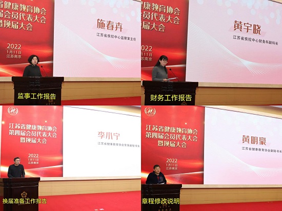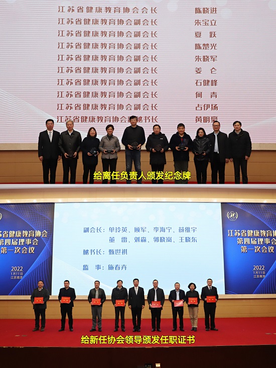 在随后召开的江苏省健康教育协会第四届理事会第一次会议上,当选会长武鸣向第四届理事会领导成员颁发了证书,同时宣布姜庆五、黄泽民、陈晓进三人为第四届理事会特聘顾问。当选秘书长甄世祺宣布了第四届理事会聘任的副秘书长名单。