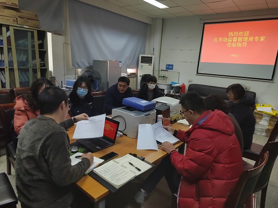 2022年1月19日,南京市鼓楼区市场监督管理局药械科科长赵颖一行4人莅临我中心监督检查实验室新冠检测试剂和疫苗使用及管理情况。中心总务科和疫苗管理科相关工作人员出席座谈会并陪同现场抽查。