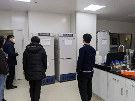在A7实验室现场查看新冠检测试剂储存和设备管理