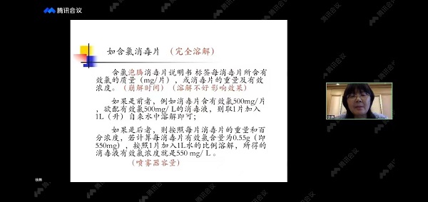 省疾控中心党委副书记、副主任、主任医师徐燕在疫情防控现场通过视频出席会议并授课。她强调消毒工作务必做到:一要进一步重视消毒工作,加强部门联动和相互配合;二要进一步加强培训和指导,努力做到规范消毒,精准防控;三要进一步加强队伍建设,保证消毒专业人员数量质量;四要进一步加强科普宣传,倡导社会层面科学消毒。授课时围绕集中医学观察场所管理与消毒技术,全面系统讲解集中隔离医学观察场所设置与管理要求、不同部位和对象消毒技术、消毒质量控制和评价等重点内容。
