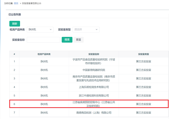 在此背景下,为拓展业务范围,提升能力,凸显优势,满足社会需求,更好得为企业服务,理化所积极申报净水机水效标识检验检测实验室。经过精心准备和多方沟通,中心顺利通过中国标准化研究院水效标识管理中心审核,并在其网站公布获得水效标识检验检测实验室名单(http://www.waterlabel.org.cn/sxbs/syspa/display.htm)。据统计,全国范围内通过净水机水效标识第三方实验室认证的共有18家,截止目前是全国疾控系统第一家。