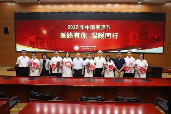 最后,江苏省医师协会领导为中心医师代表们送上鲜花和祝福贺卡,并合影留念。