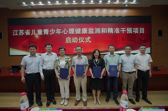 2022年8日16日,由江苏省疾病预防控制中心、南京医科大学附属脑科医院、南京医科大学公共卫生学院联合举办的江苏省儿童青少年心理健康监测和精准干预项目启动暨培训会在南京顺利举办。南京医科大学副校长夏彦恺、江苏省卫生健康委疾控处副处长方干、南京医科大学附属脑科医院院长赵太宏、江苏省教育厅基教处一级主任科员冯帅、江苏省疾病预防控制中心纪委书记周永林等领导参会。来自南京医科大学附属脑科医院、南京医科大学公共卫生学院、无锡、盐城、泰州等三地项目点教育局工作人员、疾控中心学校卫生工作负责人、学校相关工作人员以及江苏省疾控中心儿健所工作人员等60余人参加了本次项目启动暨培训会。