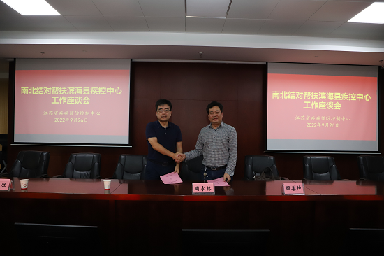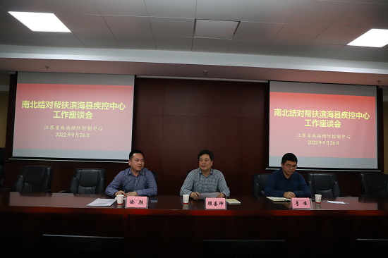 2022年9月26日下午,在省疾控中心A楼1501会议室召开南北结对帮扶滨海县疾控中心工作座谈会。江苏省疾控中心纪委书记周永林,滨海县疾控中心主任、党支部书记顾善坤,滨海县疾控中心党支部副书记李准,滨海县疾控中心党支部委员、办公室主任徐胜出席会议。省疾控中心相关部门负责人参加座谈。