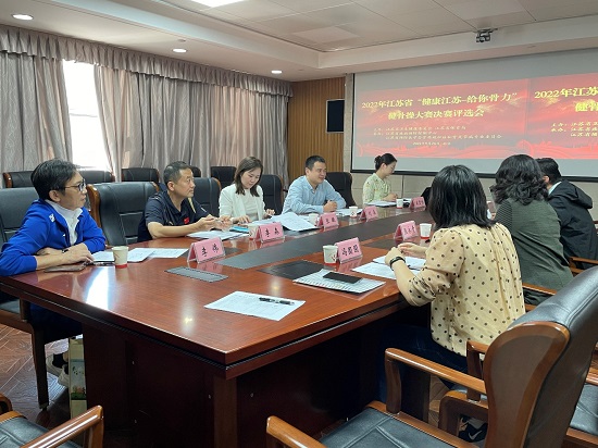 2022年9月26日,由省卫健委和省体育局联合主办,省疾控中心和省预防医学会骨质疏松和骨关节病专委会承办的江苏省“健康江苏-给你骨力”健骨操大赛决赛评选会在南京召开。2020年上半年,全省13个设区市以线上+线下相结合的方式开展了丰富多彩的健骨操大赛宣传推广和评比活动,共推送了21个参赛视频参加全省决赛。决赛评选会邀请了来自省卫健委、省体育局、省体育科学研究所、省社会体育管理中心和省疾病预防控制中心的7位评委会专家共同评选参赛作品。