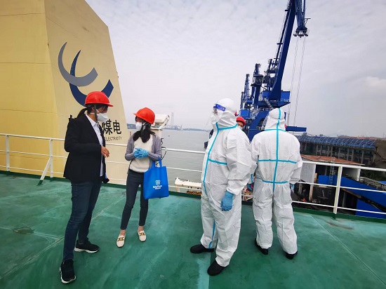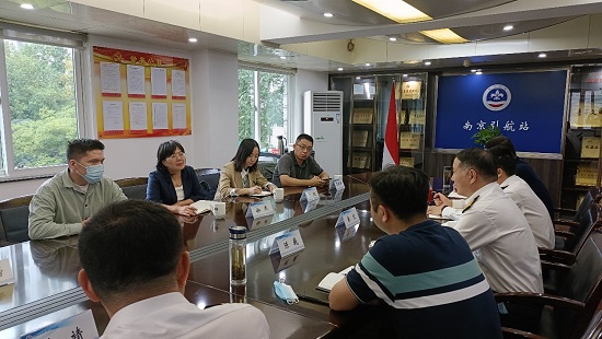 徐燕副主任一行首先登上停港的货船,实地了解引航员的工作环境。调研中,长江引航中心南京引航站副站长钱靖、副部长陈巍分别介绍了目前防疫工作的基本情况,并提出了实际工作中遇到的主要困难和存在的问题。徐燕副主任一行排查了航运工作中的防控要点,对遇到的困难提出指导解决意见。现场查看后,她们来到长江引航中心南京引航站,与引航站秦天站长等长江水路航运管理部门人员交流了防疫工作的情况。