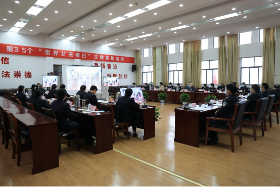 按疫情防控要求,参加主题宣教活动的领导和来宾通过视频连线形式观看了所内举办的戒毒人员集体宣誓、艾滋病防治知识竞赛和文艺演出活动。