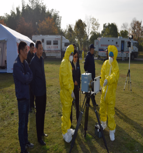 本次演练,国家核和辐射突发事件卫生应急队开展了多个单项演练,包括:应急队伍拉练、应急人员防护、应急人员去污洗消、辐射场所监测和评价、样品采集和处理、食品和饮用水快速监测、体表放射性核素污染处置、甲状腺内污染监测、远程通讯和后勤保障等科目。演练首次使用辐射监测无人机对环境放射物质进行谱分析,首次使用人员去污洗消移动平台对应急人员开展体表去污洗消,首次使用便携式谱仪开展甲状腺放射性碘污染监测,演练充分展示了国家核和辐射突发事件卫生应急队能力提升建设的成果。