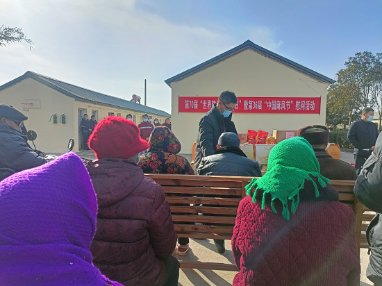 为深入贯彻党的二十大精神,持续推进消除麻风病危害的进程,高质量实施防治策略和措施,关心关爱麻风病患者和防治人员,为他们送上一个祥和新春的祝福,1月16日,省卫生健康委、省残疾人联合会、省疾控中心、省麻风防治协会等多部门在滨海县举办“世界防治麻风病日”慰问活动。省卫生健康委疾控处处长陆伟、省残疾人联合会康复处二级主任科员张宗亮、省疾控中心办公室主任陈昌挺、省麻风防治协会理事长张连华等参加慰问活动。慰问组一行冒着严寒,驱车近四小时到达位于黄海之滨的滨海县疾控中心麻风康复村,会同市县相关部门负责同志,探望慰问麻风休养员,向他们送上党和政府的关怀,与这一特殊弱势群体共迎新春。盐城市卫生健康委副主任李军民、市残疾人联合会副理事长杜鸿儒、市疾控中心党委书记、主任汤权、滨海县县委常委、宣传部长龚春红等参加活动。