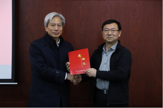 最后,朱宝立书记代表中心接受吴德主任赠送的感谢信和锦旗。